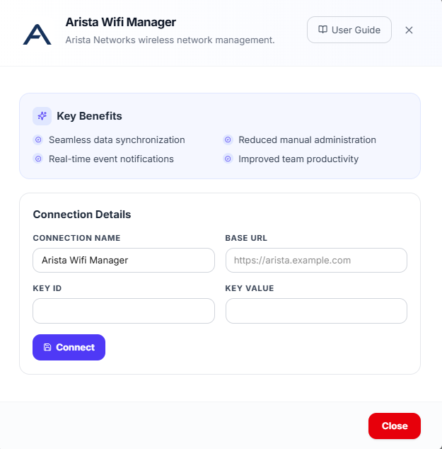 ⭐ Note: Global Admins can create multiple Arista connections in the Integration Hub. This is useful when managing multiple sites, regions, or Arista environments.